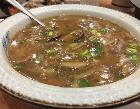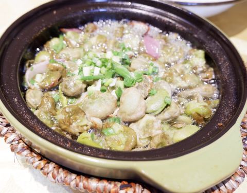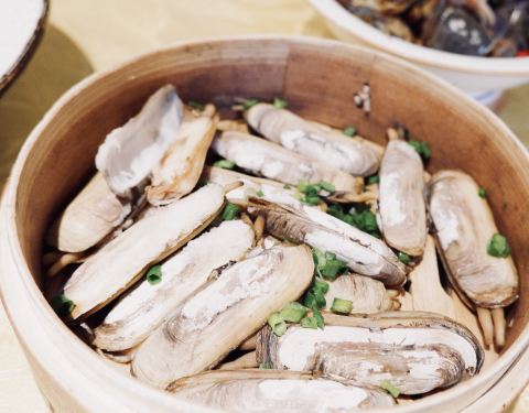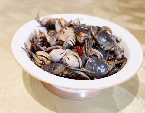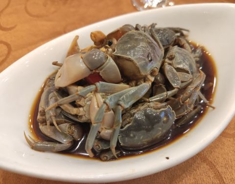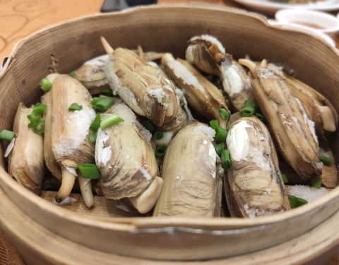 酥肉很厚实,外酥里嫩,特别好吃。 抱盐蛏子,是在竹笼里面蒸出来的吗? 最近难道是到了吃旁元蟹的时间了