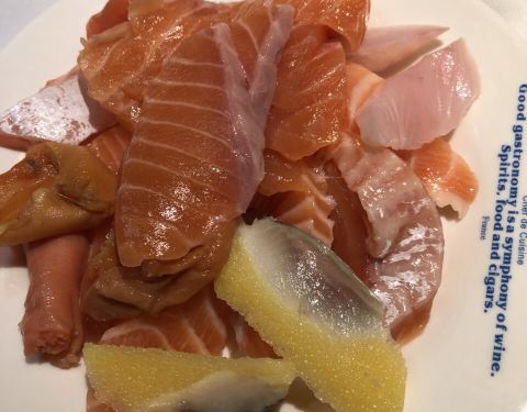 我们都已经中午12:30了,门口还排那么多人。这个餐厅的人气,真的是非常的旺盛哦。推荐这家餐厅的三文鱼还是非常好吃的。而另外这家的冰激凌也是很不错的。