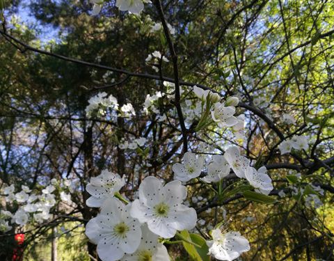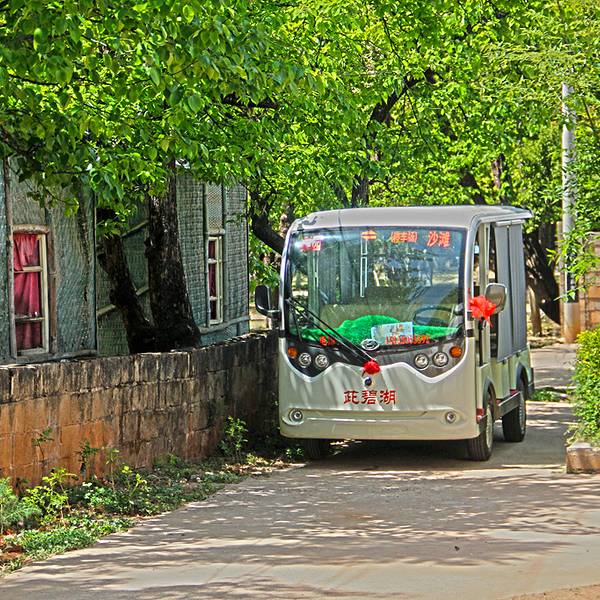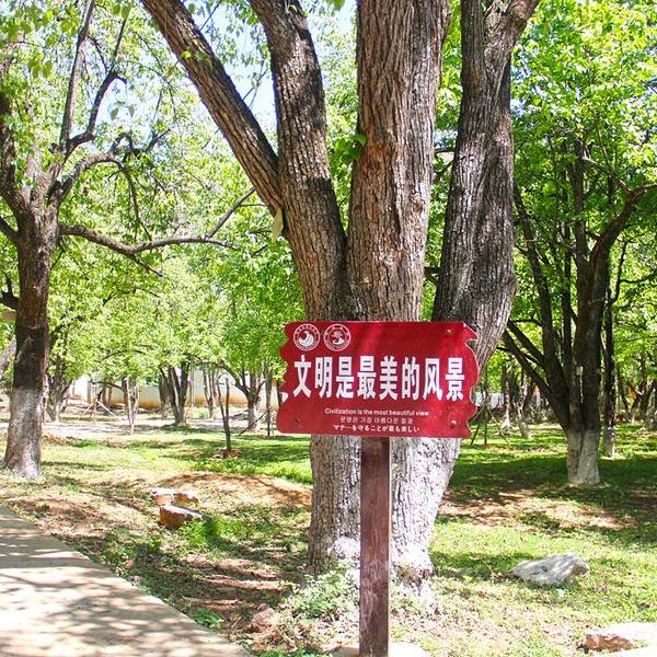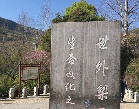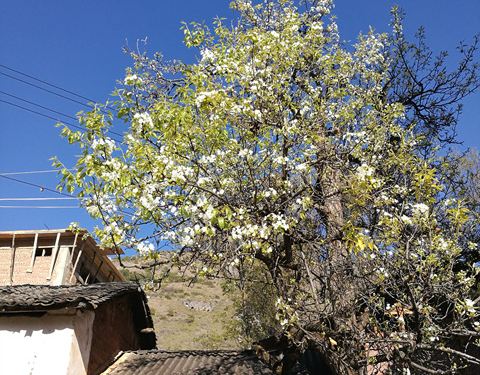 茈碧湖畔有一个“世外梨园”的梨园村,让人们逃离喧嚣的都市,享受安宁静谧的生活.因村中遍栽梨树而得名,唯一的出村通道,就是划船通过茈碧湖。村子里面的房屋,全都掩蔽在梨树丛中。从茈碧湖对岸眺望梨园村,看到的只是一片山洼里的绿树,看不出一点村落的痕迹。是具有典型聚落特点的白族古渔村。 村中编植梨树,据说源于明嘉靖年间,至今500年左右。我们到的时候,花只开了些许,没到盛花期。古梨树跟我们平时看到的梨园不一样,树型高大,枝条下垂,花朵没那么多,所以并没有如云如霞的气势,有点小失望的说。 整个村子正在大兴土木盖房子建农家乐,路也在修,挖得一塌糊涂,到处机器轰鸣,本来以为自己能到一个世外桃源,没想到还是一个俗世,村子不大半小时转了一圈,果断放弃留宿一晚的想法,只想快点逃离。