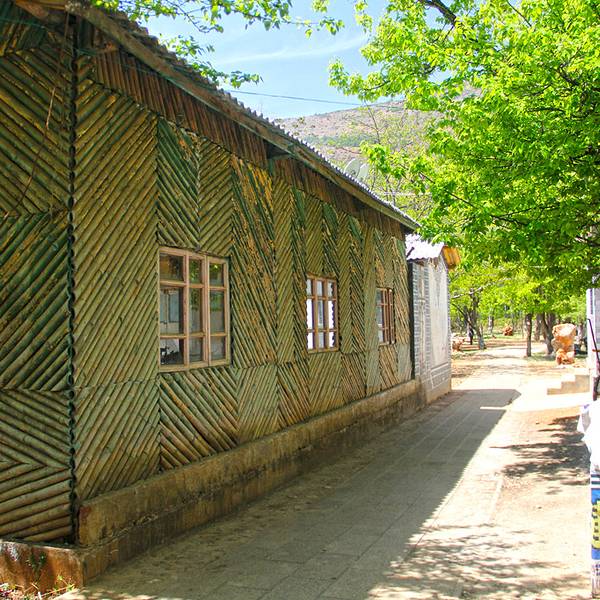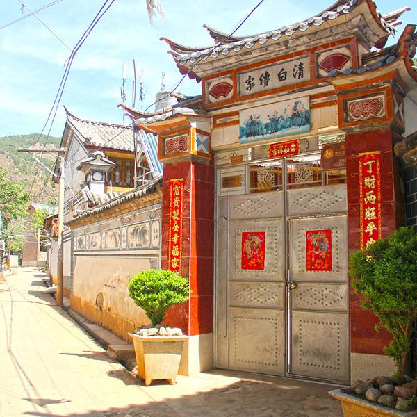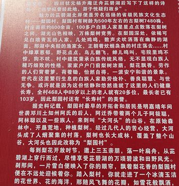 因村中遍栽梨树而得名,唯一的出村通道,就是划船通过茈碧湖。村子里面的房屋,全都掩蔽在梨树丛中