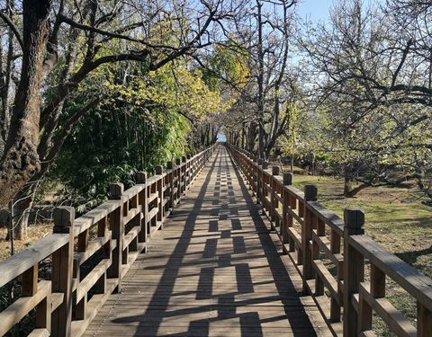 到码头,下船后,发现原来想看的梨花几乎没有了,都谢了,留下了满村子的绿。 我们是从最右边进村的,进村后就和姐姐分开走了,姐姐没有吃中饭找地方吃饭了,怀梦草开始了一个人的行走。 因为想拍张村子的全景。所以得找高地,从码头的右边进村,一直绕到村子后面,还真有路,不过是刚刚修的还没有完全修好,路上全是黄泥,好在是个大晴天,要不然该没法走了。于是一路刚好绕村半圈,从码头的左边走到了右边。 路的尽头有正在修建的工地,正好也是拍村子全景的好去处。虽然是满坝子的绿,也只能看着满坝子的绿脑补成满坝子的白中绿了,也许还有些粉。脑补的时候可以天马行空,提供无限大的空间了。 下山到村里,刚好走到栈道上了。这里这条栈道一直是非常喜欢的。无论是拍照还是周边环境都是赞赞的。很喜欢的说。栈道是修在那些古梨树中间的,走在栈道上经常可以看到梨树下休息打盹的老人们,特别的闲适舒服。