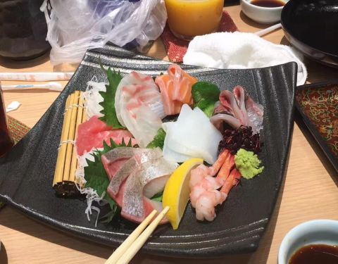 惊艳的野生河豚料理,轻薄的生鱼片,这一套河豚鱼餐,有寿司、火锅、甜点、水果,生鱼片真的非常新鲜好吃!性价比超高。棒棒哒,超级好吃