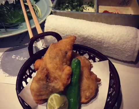 最喜欢的是炸河豚鱼,口感很像鸡肉,但是要比鸡肉柔软。还有就是河豚鱼皮,口感很好。这家店的主人是歌艺人。有三种选择,一种就是比较便宜的,3780日元,还有就是比较多的河豚吃饭4980日元。另外一种更加贵些6880日元。最后吃完河豚鱼,把米饭加进去,加上鸡蛋和葱末味道好极了。在日本吃的地道的河豚鱼料理中比较地道的。