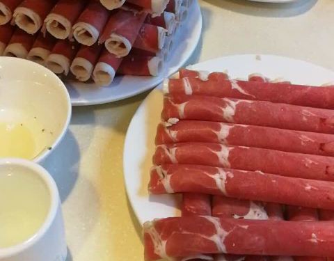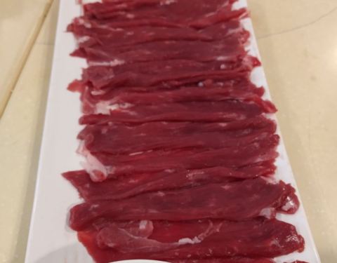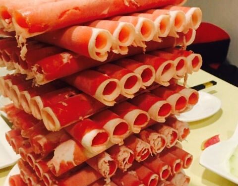 - 我们吃了好多,羊肉很好,一点不膻。这家火锅好赞,羊肉堆得高高的一盘上来,是不是很霸气