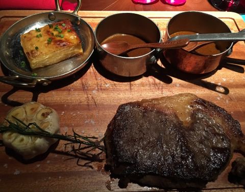 美食及品种:餐前面包是现烤的法式面包,不但香浓而且黄油味道比较入味,要乘热吃;海鲜绘饭比较推荐,里面的蛤蜊、鱿鱼和青口贝都比较新鲜,拌在饭里使得米饭也很香,而且量也不小;牛排有多部位可以选择的,这次点了牛眼肉,要了7分熟的,感觉其实选择5分更合适,里面还搭配了不少时蔬,酱料给了两种,更喜欢黑胡椒搭配细盐;这里的啤酒比较清淡,虽然要48元一份,但挺适合女生的;另外松饼、牛肉薄片和海鲜浓汤也是店内招牌。