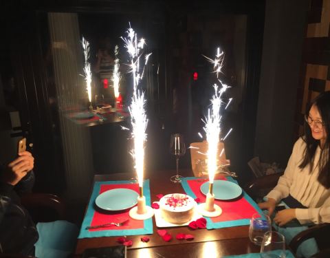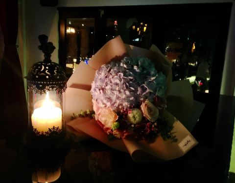 环境位子不错,在我喜欢的路上,一个小雨的夜晚为庆祝好友新婚,小伙伴们小范围聚会的地方。打电话过去提前说明了来意,于是在桌上布置了玫瑰花瓣,也为我们的蛋糕插上了冷烟花。7分熟的牛排不错,尤其配的千层土豆全场最佳。鹅肝还不错一点点腻,龙虾饭没有得到的好评,虾不够入味,饭黄油过多有点腻。。
