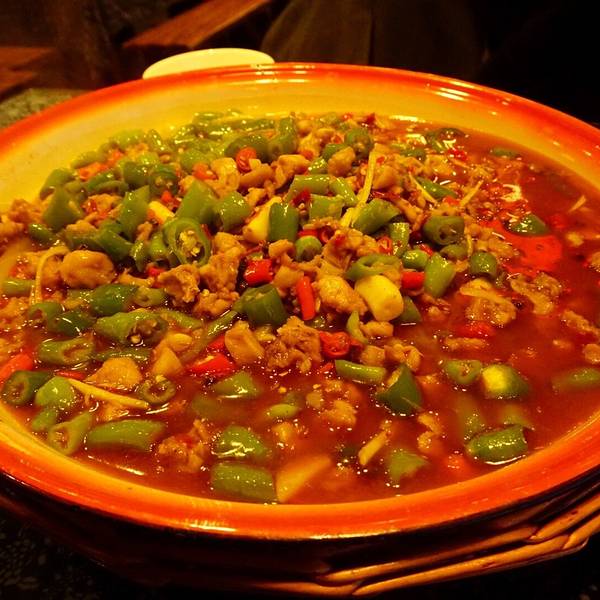 这家店位于成都宽窄巷子附近,因为是冬季,不算旺季吧,在大众点评上看到这家店还不错,逛完街后就去了。还好有位子,因为看起来每份菜量都不少,没敢多点,想要个锅边馍有没有了,最后只点了一个店里的招牌菜巴...