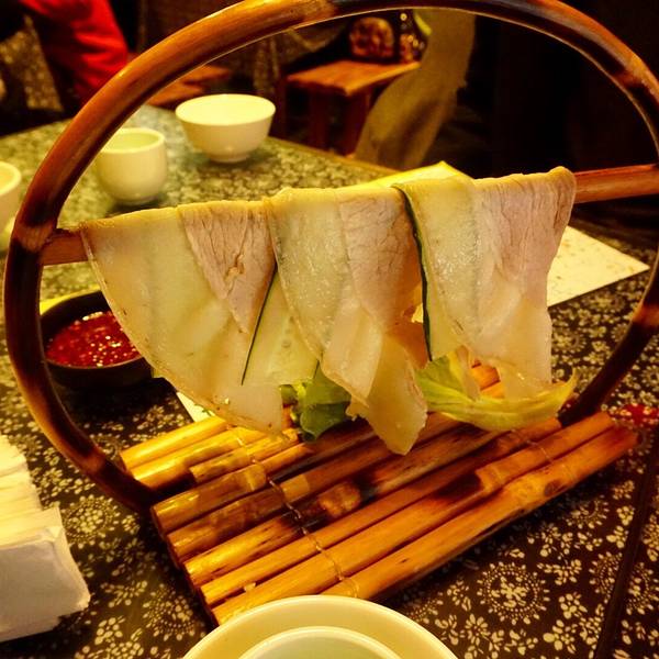 渝地第一餐就往“饕林”去。非遗白肉、麻辣兔头、锅边馍馍、冰粉,味道不错。麻辣兔头味道浓郁,麻辣鲜香,锅边馍馍脆脆的边,味道不错。