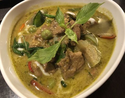 在暹罗广场宝格丽的B1层,这个楼层有很多的小食和餐馆,走到这里觉得是比较纯正的泰国菜,就进去尝了一下。服务不错,菜单有图片和英文,店员不大懂中文,但是看到我们有点咖喱会问需不需要米饭,泰茶点的热的,味道很浓郁,很香甜。可以刷卡也可以付现金。绿咖喱里面稍微有一点点辣,但是配米饭也还好。