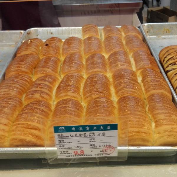 【位置】马来食品就在商业大厦的一楼,在小超市的旁边,位置很好找,大商超市的一楼有一部分都是卖吃的,从后门进比较好。【周边】大商处于市中心地带,周边无论是购物还是住宿都很方便,里火车站非常近,过地下街就是了,赶车前来买点面包是不错的选择。【介绍】我第一次吃是在大约08年,妈妈给买的牛角包,外面的面包很软,嚼起来口感非常好,里面是豆沙,我最喜欢的食物之一,豆沙很甜,配上外面的面包一起吃,味道很美味,绝对的美味。【价格】他家的面包几乎都是论斤卖的,我感觉主打面包是牛角包,然后红豆面包,豆沙面包什么的都很好,还有绿豆糕,板栗饼,比超市里面袋装的好多了,不仅甜而且很软,那些袋装的都太硬了,一点不好吃。而且这些食品大多数都是9.8元每斤,我感觉价格很合理。如果这些吃腻了,你还可以试试别的口味,什么绿茶糕等等。制作是现场制作,顾客可以看见员工是怎么加工面包的,从和馅就能看见,很干净卫生,工作人员都带着口罩手套。【不足】毕竟是在大商里面卖东西,有时候多个一角两角的不能抹零,袋子是收费的,多要一个不能给你。而且感觉有时大妈们的态度不是特别好,希望稍微热情一点吧!