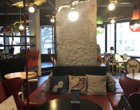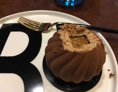 店在友谊商城写字楼楼下附近,还是很好找的。店里一共两层,一楼是甜品还有面包,二楼装修的比较复古,坐着的沙发也都挺舒服的。可以吃甜品还可以吃正餐。不过主推还是甜品,种类很多还很精致! 服务态度都还不错,给推荐了甜品和面包。 一颗橙子 48: 做的非常逼真,颜值和性价比上还是挺好的!外壳是白巧克力口味的,里面是奶油,很细腻味道不腻,最里面还有橙子的果肉。很好吃!底层脆脆的很香。 星球40: 我弟选的!确实有种神秘星球的感觉…外皮是巧克力,里面是咖啡和抹茶味的,还不错,最里面好像还有一块蔓越莓糕,味道也是很细腻很精致。 还买了好几款面包,最喜欢草莓面包,还有夹肠的小热狗也不错,推荐!