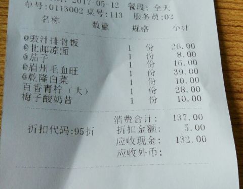 今天中午在北邮食堂吃了午饭,学校食堂现在都如此高大上了,首先,这是食堂不止一个,有的只能刷学生饭卡,有的还可以刷支付宝,大众点评买单,真是太方便了。 我们去的叫楼上楼茶餐厅,就在北邮羽毛球馆北边,中午12点半左右到的餐厅,人还真是挺多,大圆桌,长桌,四人桌,适合各种理由来吃饭的朋友。我们靠窗四人桌,还有一只萌萌的大熊公仔,这餐厅真是挺有意思。 餐厅价格平民化,主要是味道也很好,毛血旺,料还很足,不是那种傻辣傻辣的。北邮凉面,看了看附近餐桌,点的人还挺多,味道不太好形容,反正和新川不一样。乾隆白菜,浓浓的麻酱香,还有一点芥末味儿,配着白菜梆子的清脆多汁,很爽口的一个凉菜。豉汁排骨饭,很大一份,类似于煲仔饭,我喜欢。 餐厅离单位有点远,但偶尔过来吃吃,还是比较好的选择。