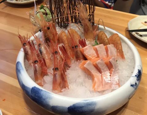 - 两人位子也是一间间隔开的,座位宽敞,私密性很好。 刺身切片相当厚实,甜虾新鲜个头很大