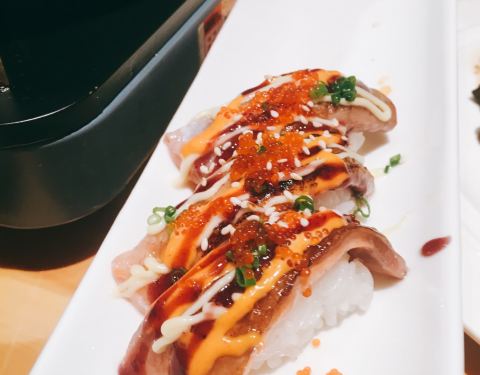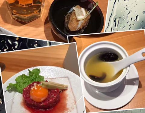 法国鹅肝、烤年糕、三文鱼、甜虾、烤牛舌、烤鸡翅全都上了3次,速度不错,基本没有漏单,吃的很满足。人均200左右,还可以。