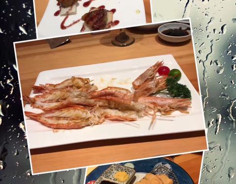 刚从北海道回来,同事们就聚餐,订了八佰伴附近的日料自助餐,人不少,订了个大包间,感觉还不错,外面下着雨,同事们各自点了喜欢的日料,有些同事不太爱吃生食,店里也有烤小青龙,海参之类的,刺生都蛮新鲜的,甜品的味道也不错