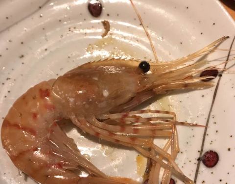 两人位子也是一间间隔开的,座位宽敞,私密性很好。 刺身切片相当厚实,甜虾新鲜个头很大