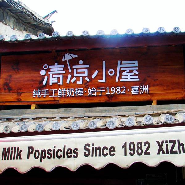 清凉小屋就是位于喜洲镇四方街的一家小店 我们当时去的时候没开门 据说冬天都不营业 只有夏天才营业 在当地名声很大 很多超市都有在卖他们家的冰棍 也不知道是不是同款正品 反正没有尝试过