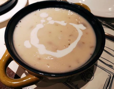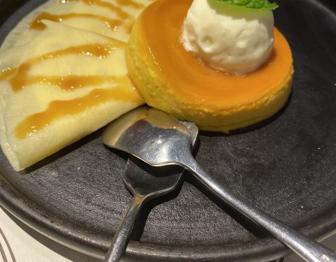 非常喜欢他们家的南瓜布丁,从价格28块涨价到38块,但是里面多了一点松饼。还有一小坨香草冰淇淋,味道还是可以保持水准的,没想到生意也很好。