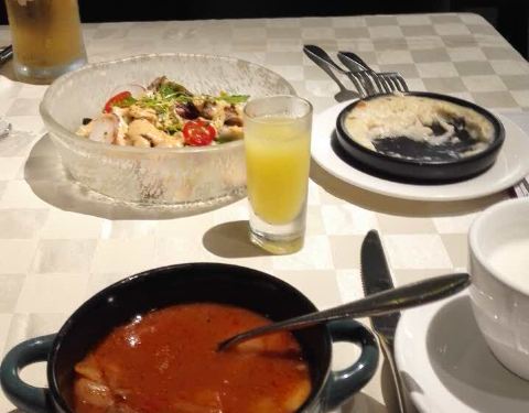 朋友给了优惠券,拖着最后一天才和老公来吃…餐前面包,大概饿了吧,好好吃