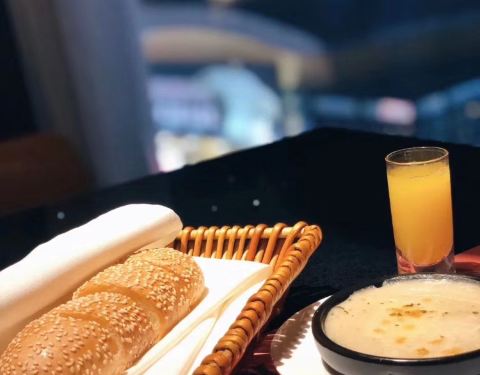 - 朋友给了优惠券,拖着最后一天才和老公来吃…餐前面包,大概饿了吧,好好吃