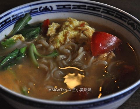 - 早餐去尝了一次,西红柿鸡蛋面,大排面,虽说是手工面条,但真的很粗硬不太好嚼,女士吃不完