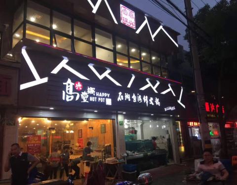 ◽️周三去这家店的时候就已经是挺晚了,但店里依旧有络绎不绝的食客。很远就就可以看到醒目的招牌,高兴一锅。 ◽️店里的环境算是干净整洁比较接地气,临近圣诞,店里墙壁上有些圣诞的装饰物,增添了一丝节日色...◽️周三去这家店的时候就已经是挺晚了,但店里依旧有络绎不绝的食客。很远就就可以看到醒目的招牌,高兴一锅。 ◽️店里的环境算是干净整洁比较接地气,临近圣诞,店里墙壁上有些圣诞的装饰物,增添了一丝节日色彩。 〰️ ◾️ 店有两层,二楼有包厢,也有大桌,环境还是不错的。一楼门口有海鲜池,各色海鲜, 在海鲜池里,鲜活跳跃吸引着渴望尝鲜的吃货们。 〰️ ◾️说到海鲜火锅,我也算吃过很多,海鲜火锅最重要的还是新鲜的食材,选好菜,店家直接海鲜池里拿最新鲜的,赞的不行。多的不说直接说这条街最正的—生猛海鲜拼盘 ◾️新鲜全活的大海虾一只只用竹签穿好,面对它们才觉得自己确实残忍,让它们经受这样的折磨。为了减少它们的痛苦,赶紧全部下锅才好。这些虾的个头巨大,吃起来很有满足感。海虾本身的品质也保证了肉质的劲道弹牙和鲜香,任何的调味都是多余的。 〰️ ◾️小青龙开餐之前才切成二半,这样足够保持它的鲜甜~~好厚好厚的肉哦。。啖啖都是肉,那种鲜味真让人沉醉,青龙的味道就是来得爽脆鲜甜。 ◾️新鲜的象拔蚌,下锅即刻就能捞上来,滑爽、柔嫩,嘴尖有股甜滋滋的味道。 ◾️超大的鲍鱼烫一烫就熟。。。。厚厚的肉质爽脆之极~ ◾️石斑鱼丸,石斑鱼肉质坚实,细嫩的口感做成鱼丸后敲到好处。 〰️ 初体验,高品质的新鲜食材,还具有超高的性价比,这种隐藏好店还是要去不断挖掘啊。