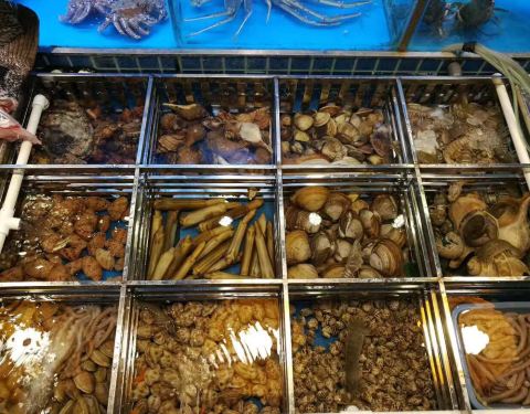 朋友约饭,2人小聚 地铁出来需要稍微走一点,一路上都是饭店,这家规模还大一些,门口挺大一个档口全是海鲜 种类超乎了我的想象,估计也都是像我们这种三三两两来吃饭的多,品种多,每个格子里不会有太多,这个要...朋友约饭,2人小聚 地铁出来需要稍微走一点,一路上都是饭店,这家规模还大一些,门口挺大一个档口全是海鲜 种类超乎了我的想象,估计也都是像我们这种三三两两来吃饭的多,品种多,每个格子里不会有太多,这个要点那个要点 按分量结算 菜品的话在墙上,自己点,价格还是不错的,而且菜品和图片很接近 天冷喝汤,花胶鸡,现在最流行的 不过很多店家都是用很多水来当汤底,这个就不会特别浓稠了呀 但是鸡肉真的是量多,花胶也处理的不错!两个人鸡肉没吃完 调料品种不多,但是基础款都有,这家的沙茶是微微辣的 手工鱼丸,真的超级有弹性 猪肉,和外面的不一样,很有特色,看上去像芋头呢 这个才都是朋友点的,我也不知道这啥菜 不过越吃越有味道 番石榴第一次这样吃,淋上了梅汁,酸酸甜甜的,很开胃 小鲍鱼个头还是挺大的 竹蛏王,特别大,处理的很干净 很新鲜啊