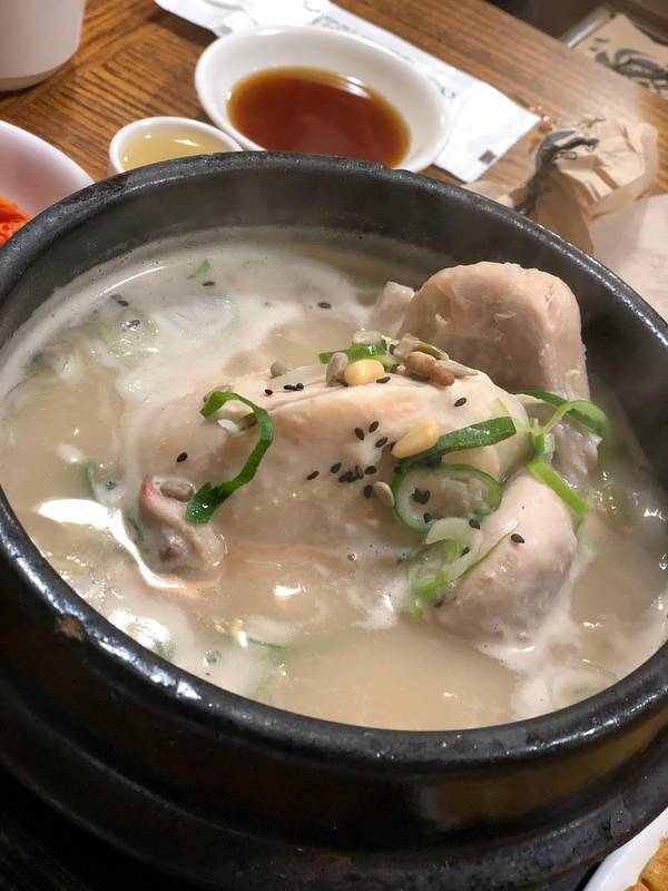 参观完景福宫,已经一点多了,我们又累又饿,就直奔主题--土俗村参鸡汤。招牌菜 参鸡汤店里的服务员是中国人,完全不用担心语言沟通的障碍,我们点了鸡汤,还点了海鲜饼,两个人酒足饭饱,养精蓄锐又开始下一站了。