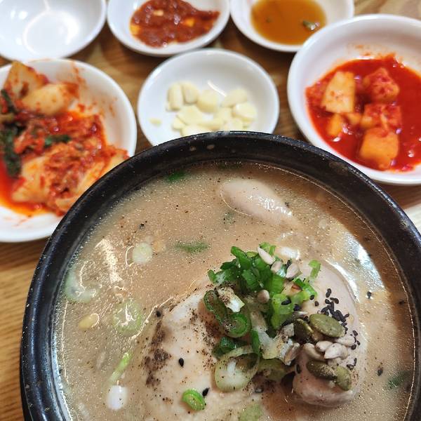 来韩国怎么能不吃参鸡汤呢!第一推荐便是韩国家喻户晓的“土俗村”。坐落于景福宫附近的韩屋,逛完景福宫便可漫步到“土俗村”品尝这极品美味。镇店之宝“参鸡汤”采用精选糯米、4年高丽人参、南瓜籽、黑芝麻、胡桃以及“土俗村”秘制3种原料等营养丰富的食材煨制而成,软嫩鸡肉入口即化。在这里一边享用营养的鸡汤一边欣赏典雅的建筑,顿时神清气爽,精力十足。