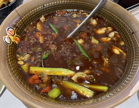 京城特色川菜店,主打重庆江湖菜,江湖菜原是巴山蜀水之间靠码头寻生计、混江湖的人常吃的菜,演变至今,最麻辣鲜香的三样菜品保留下来,便是干烧鳝段、江湖鸭血和原味水煮美蛙。