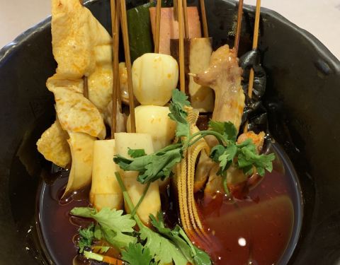周二中午和朋友过去吃饭,幸亏到的早没有排队,我们两个人就坐在大厅吃的,点的冷串味道很好又香又辣的,麻辣香肠感觉太肥了,全是肥油,牛蛙做的也不错,不是很咸,就是量不是很大,兔丁也很辣,幸亏是冷吃的,感觉还好一点。整体感觉还是不错的,人多了吃比较热闹,可以多点些菜,每种都吃一点。