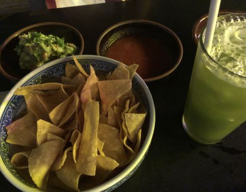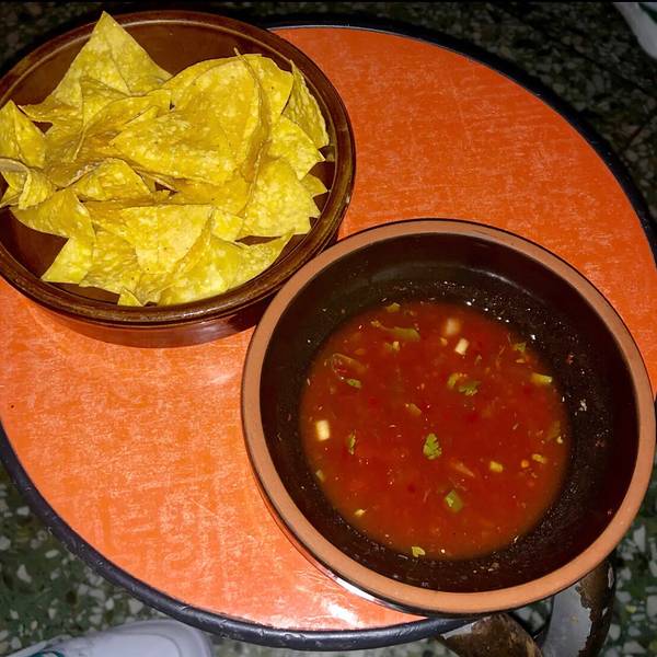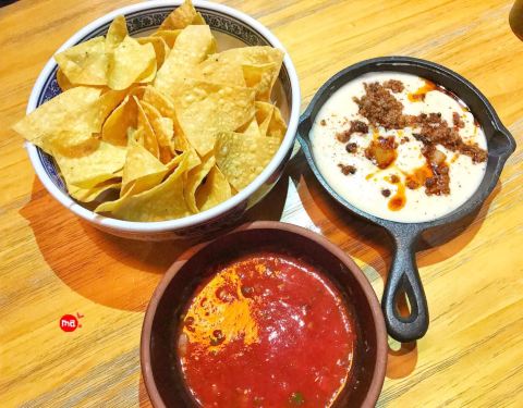 等待的时候服务员上了玉米片,沾上红色酱料脆脆的味道很好。人均一百五左右...这家餐厅在三里屯街里,导航是捣乱。最后我找到银行对面才看到。门口小很容易错过。就是排队等候时间太长了。吃的是摩西哥餐塔克。