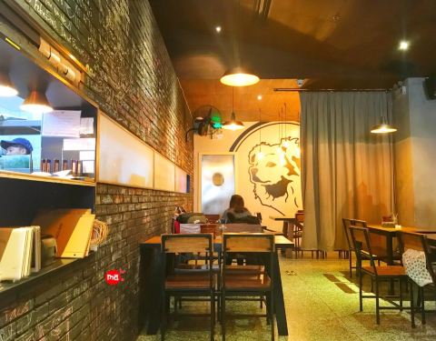 简单的工业风格装修,店员都好忙。门口是凹在里面的。不显眼。有个露台。