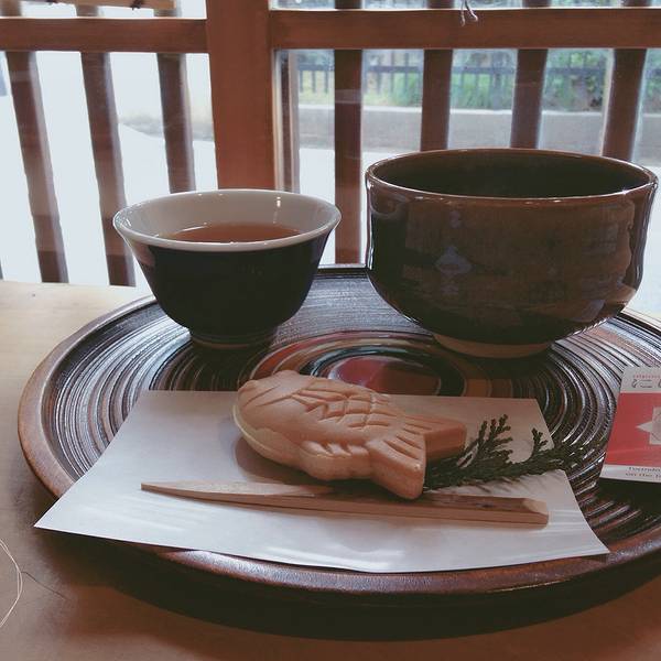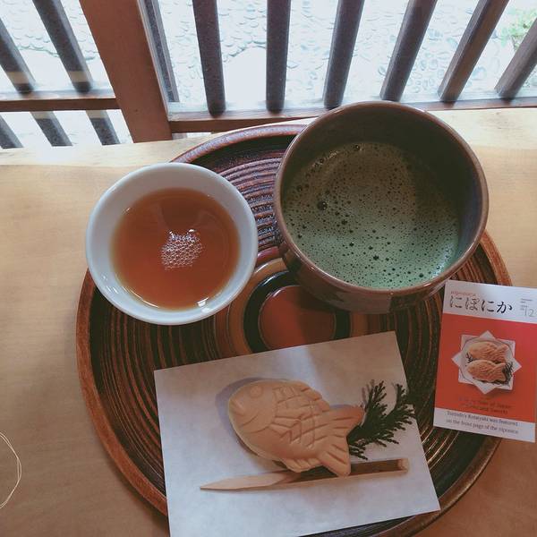既然来到上野博物馆附近了,那就顺道去一家非常有日式气氛的日式点心店:桃林堂吧。桃林堂的器物、家具甚至门窗和壁面都可以看到长久使用而积累的润泽与厚重,令人心绪不由得沉静下来。作为抹茶爱好者的我,没有错过再喝上一杯抹茶的机会。店里面的抹茶和自制日式点心是可以以套餐的形式出售的。店内的人气产品小鲷烧自然是不容错过,而这个樱花叶子包着的樱饼纯属卖相太讨喜,也点了一份。抹茶是很适合选一段宽松的时间慢慢去细品的。这里不仅要去品茶本身,还要感受日式室内装饰的“简素”之美。日本茶道大师千里休提出的茶道,讲究“和敬清寂”,一处陋室,简单的茅草屋,室内可能只安置一枝花,让茶客去想象整个春天;仅放置一碗清水,却隐喻了整个春日的湖面。 在这简素的日式点心屋里,用一碗抹茶的时间去体会做减法的日式美学。站在这小小的丸窗之前,相信每个人心中都会有所思悟。