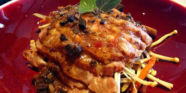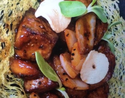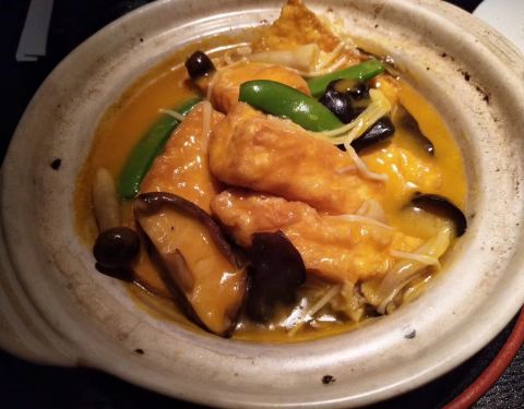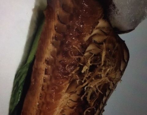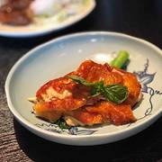 沙律香酥鸭,口感清爽的前菜,柚子配嫩鸭,偶尔一口又能惊喜的吃到松子粒,最上面做点缀的那片炸莲藕也一点不多余。一盘沙律两个人不知不觉就吃光了。