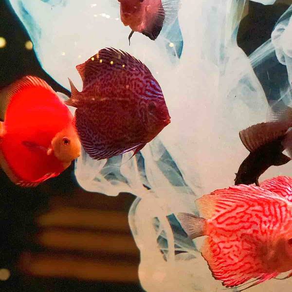 浴缸里的热带鱼儿无忧无虑地游来游去。