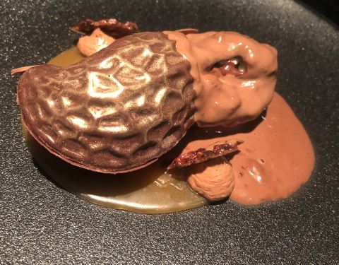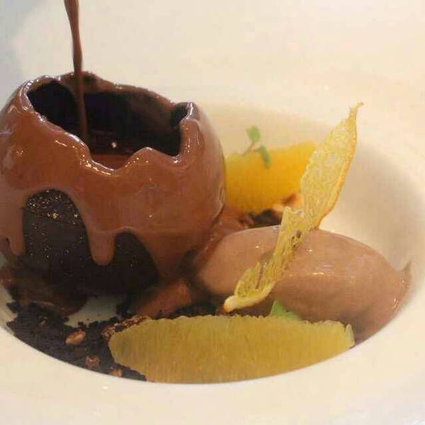 甜品各种惊艳,媲美米其林。香蕉焦糖黛丽丝蛋糕,蛋糕里有香蕉和焦糖的馅,最大的亮点是上面涂的那层焦糖酱,点睛之笔。