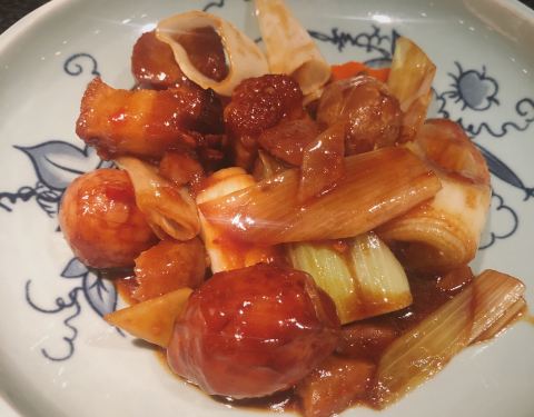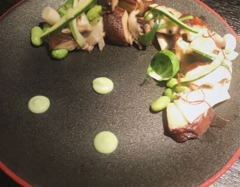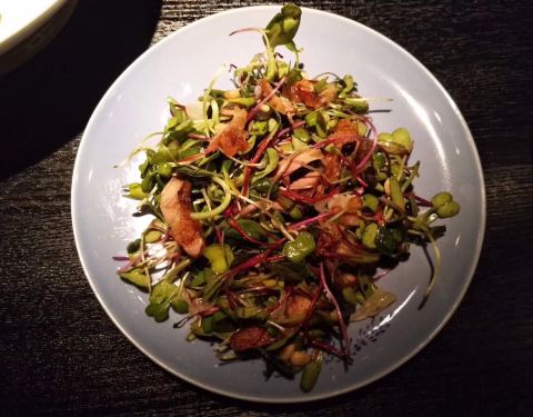 还有超级喜欢他家吧粤菜客家菜都做的如此潮流。 沙律里有柚子和松子还有鸭肉,超级好吃。只能说太好吃了