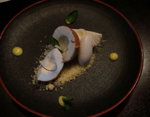 香椰冰淇淋蛋糕配椰子雪芭。椰子雪芭刚入口觉得浓郁,吃到后面就觉得有点腻。