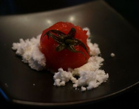 去年餐厅周的时候这家店是一位难求,今年稍微好了些,于是约了小伙伴蛮足下愿望。 餐桌多为沙发座,舒适度还是不错的,只是不靠窗边的话,即使大白天也有点暗,阿拉喜欢亮亮哒。 开胃菜是糖番茄,阿拉其实想装秀...