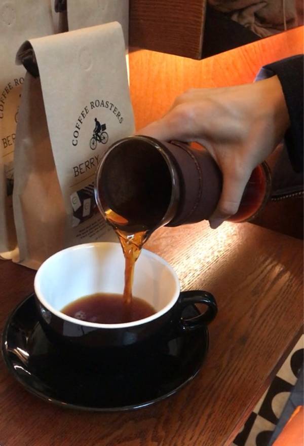 手冲咖啡莫扎特是音乐家系列里面我的最爱,现场冷下来的柑橘味也逐渐浓郁,非常喜欢,咖啡师听说我喜欢喝酸的,还专门分享了一款粉都旁的豆子,闻起来就像一碗番薯红糖水,喝起来前调有股番茄味,酸度较高,非常好喝!
