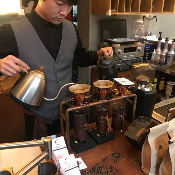 【最让人心烦的是点单后,咖啡师炫技般双手同时冲泡两杯咖啡(当时点手冲的客人并没让他忙到需要同时冲泡两杯),一入口却像刷锅水……】