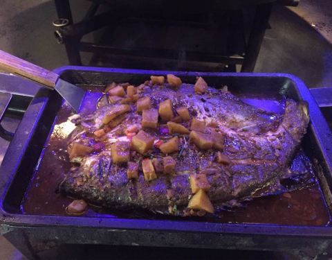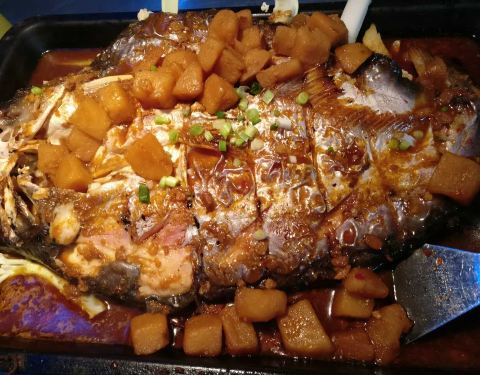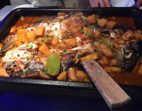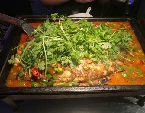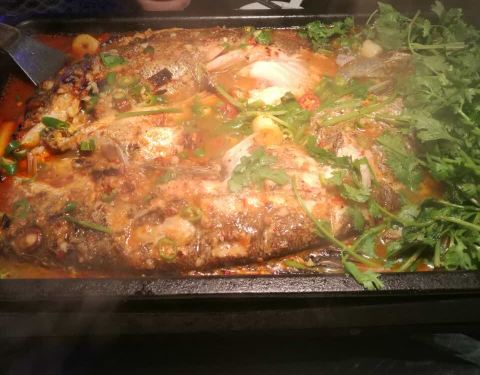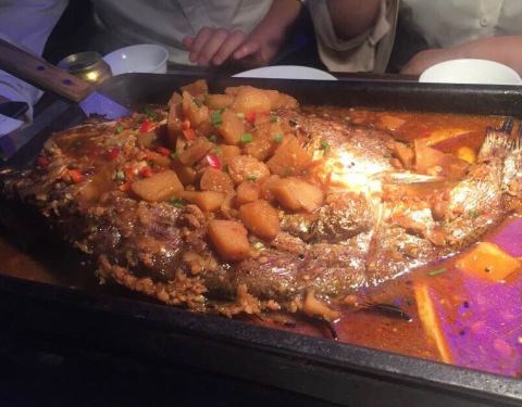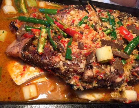 来他们家就是吃烤鱼的,服务生推荐了他们的湄公烤鱼,吃后感觉与平时吃的烤鱼并没有太大的区别。里面烤鱼选择添加一些菜,和其他的烤鱼店差不多。