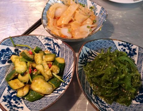 - 藕片很好吃,土豆一般不好吃,莴苣都煮烂了……小菜点了海藻和凉皮,海藻一如既往好吃,凉皮一般般