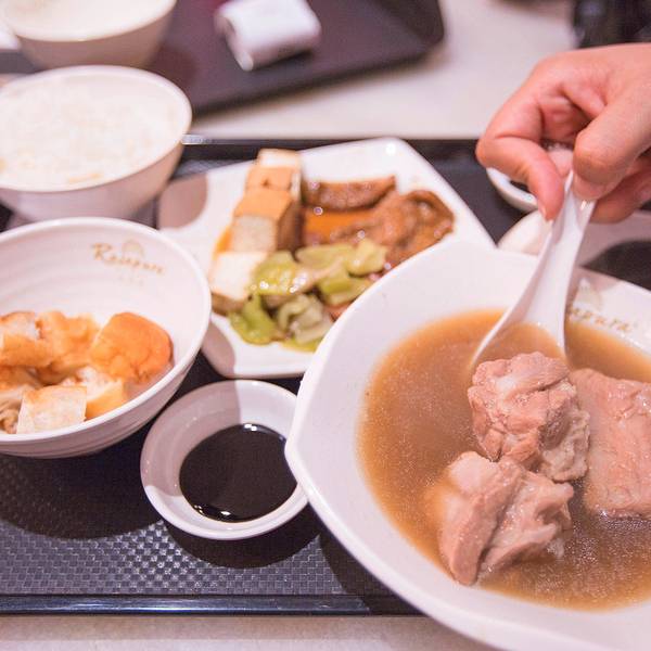 今天的晚餐就就近解决吧,实在有点太饿了,吃啥就不挑剔了。最近的就是我们刚刚逛过的金沙购物中心,这里面有个忠食馆,就相当于北京商场里面的大食代一样,啥都有。我们看了一圈选择了这家,也算是连锁肉骨茶的...