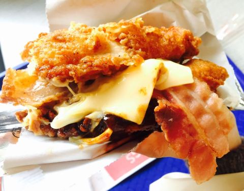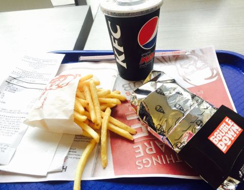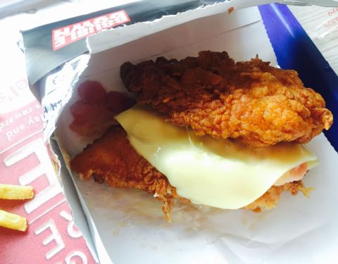 在新加坡也有许多的肯德基,但这里的口味与大陆的完全不一样。哪怕就是香辣鸡翅,也有很大的不同,没有那么辣,并且还加入了起司,味道有些怪怪的。不过这里的汉堡很大,吃起来超爽。
