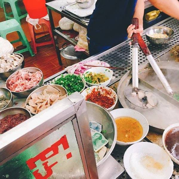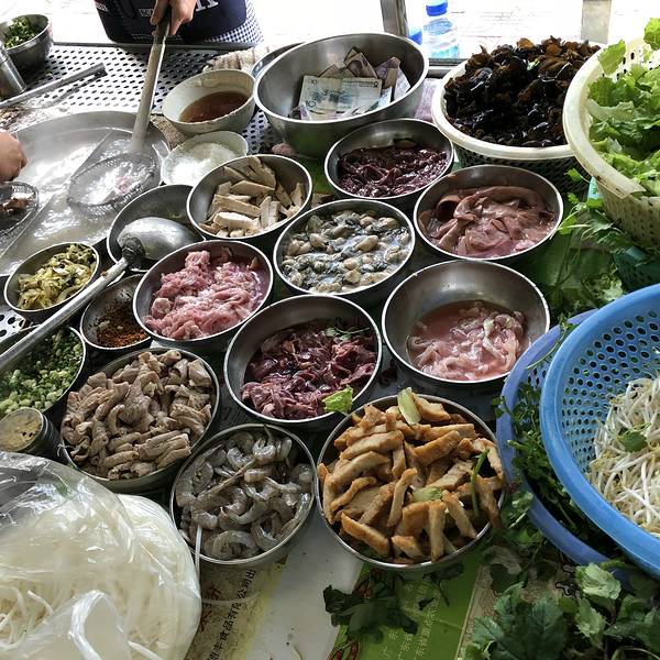 从潮州到汕头已经下午了,放下行李饥肠辘辘就去觅食了,这家广场正宗原汁薏米店离得不远,这边也有个人民广场,附近有不少小店。 这家评价还不错,有吃薏米汤粿条汤炒粉等等,我要了一碗薏米汤,锅子边放着各种配料有猪肉猪杂海鲜蔬菜,可以自己选择的,我说都来点吧,老板娘说只能4-5样,哈哈好吧,就随便让配了下,薏米汤和想象中的真是大不同,汤底是骨头汤熬制的,我还吃到几块碎骨,很鲜美,放了猪肉猪肠生蚝木耳等等,很丰富,味道不错,原汁原味就很好吃。