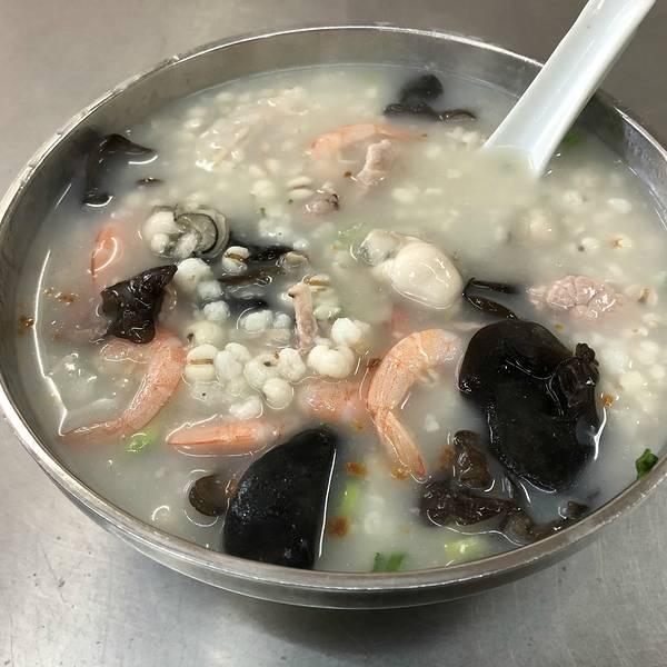 薏米粥里面的主要配料就是猪肉、猪骨、猪肚、生蚝、木耳之类的,加了白胡椒粉和香菜后非常的好喝。蚝烙脆脆的,一点不油腻,生蚝虽然不大,但胜在多和新鲜。