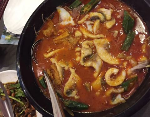 第三天,原计划是去朋友推荐的老牌子-点都德,大众点评查到广州几个区域都有分店,想着去北京路分店喝个早茶,手机排号居然五十几桌。眼看点都德排队无望,一气之下在大众点评找了一家川菜,无骨酸菜鱼专门店,店面很小,座位全满。这一顿辣的好过瘾,连吃几日早茶,点心,粤菜,味觉告诉我,想换口味了[发呆]这家的鱼嫩之外,干锅鱼腩很好吃[色]