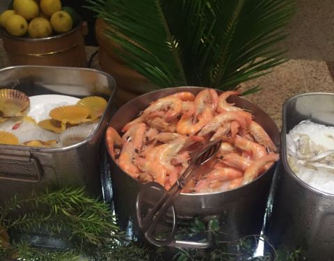 ...没位子,自助餐品种很多,有海鲜、日式料理、凉拌菜、热菜、蔬菜水果沙拉、点心,特别喜欢海鲜和点心